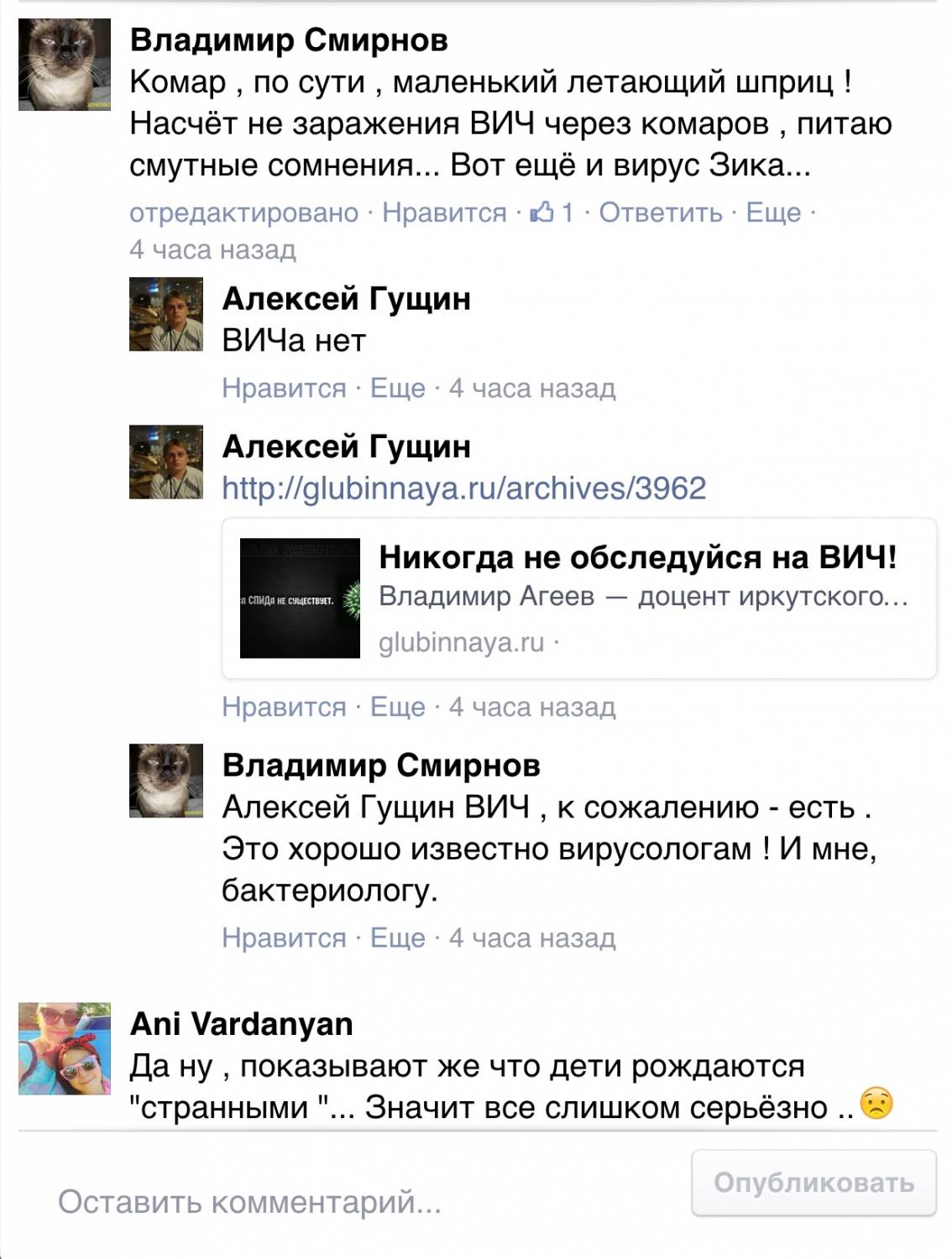 Этот Владимир С. Бактерия( лог) себя называет и такую ихенею пишет, что сомневается в невозможности передачи ВИЧ комарами.