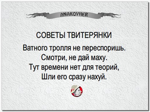 Тролль гэбэшный не философ Он пердит натужно Переспорить его можно Только нахуй нужно... Alexander Volkov @derVolkov 29. Antwort an @Anakoyher |